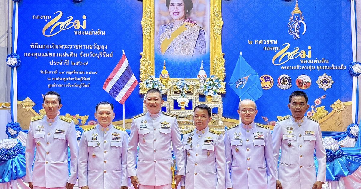 พล.ต.ต.รุทธพล เนาวรัตน์ ผบก.ภ.จว.บุรีรัมย์ มอบหมายให้ พ.ต.อ.จำรัส ศิริเลี้ยง ผกก.สภ.เมืองบุรีรัมย์ ร่วมกิจกรรมเนื่องในวันสถาปนากองทุนแม่ของแผ่นดิน และจัดพิธีมอบเงินพระราชทานขวัญถุงกองทุนแม่ของแผ่นดิน ประจำปี 2567 โดยมี นายจำเริญ แหวนเพ็ชร