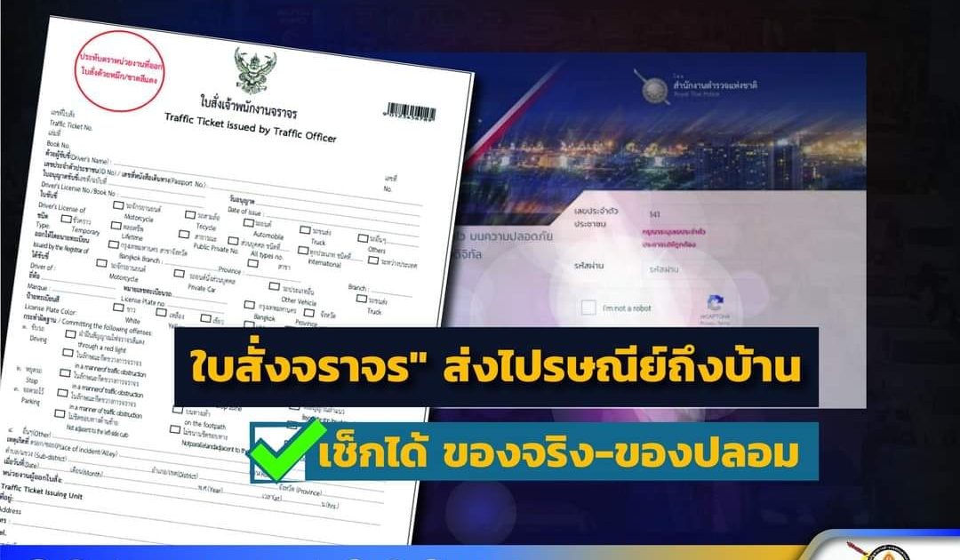 โดยผู้ได้รับใบสั่งจราจร สามารถตรวจสอบความถูกต้อง ว่าเป็นใบสั่งจริง ได้ดังนี้