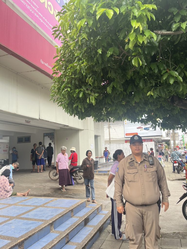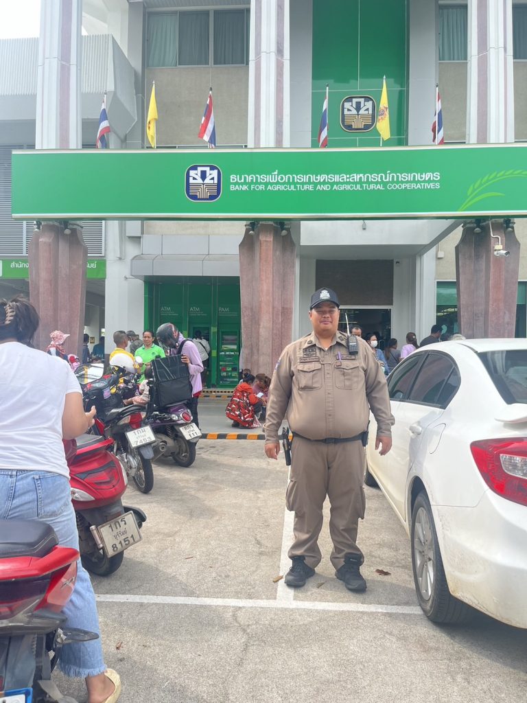 ร.ต.ท.ผจญศักดิ์ ศรีคิรินทร์ รอง สว.(ป.)สภ.เมืองบุรีรัมย์ พร้อมสายตรวจรถจักรยานยนต์ 191 ออกปฏิบัติหน้าที่ในการป้องกันเหตุ เปิดสัญญาณไฟวับวาบ ดูแลความปลอดภัยในชีวิตและทรัพย์สินประชาชน สถาบันการเงิน🔺ธนาคารออมสิน🔺ธนาคารเพื่อการเกษตรและสหกรณ์ ตามโครงการกระตุ้นเศรษฐกิจของรัฐ ซึ่งมีประชาชนมาใช้บริการเป็นจำนวนมาก