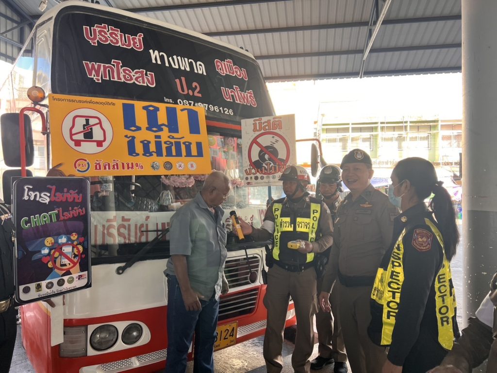 – ร.ต.ท.หญิงมุทิตา อดทน รอง สว.(สอบสวน) สภ.เมืองบุรีรัมย์ ปฏิบัติหน้าที่ รอง สว.จร.สภ.เมืองบุรีรัมย์ ปฏิบัติหน้าที่ร้อยเวรจราจร พร้อมด้วยสายตรวจจราจร ร่วมกับเจ้าหน้าที่ขนส่งจังหวัดบุรีรัมย์ ดำเนินการตรวจวัดแอลกอฮอล์พนักงานขับรถขนส่งผู้โดยสาร ณ สถานีขนส่งผู้โดยสารจังหวัดบุรีรัมย์