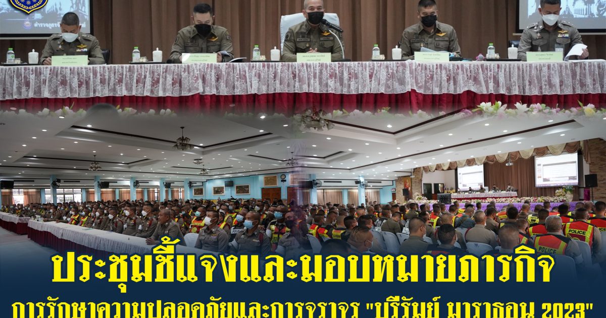 พล.ต.ต.รุทธพล เนาวรัตน์ ผบก.ภ.จว.บุรีรัมย์/ประธาน พร้อมด้วย พ.ต.อ.สุวิจักขณ์ จันทร์เยี่ยม รอง ผบก.ฯ ปรก.ภ.จว.บุรีรัมย์ , พ.ต.อ.ปริญญา พรเดชาพิพัฒ รอง ผบก.ภ.จว.บุรีรัมย์, พ.ต.อ.ศิริวัฒน์ สมกิจศิริ ผกก.สภ.เมืองบุรีรัมย์ , พ.ต.อ.ธีรพล ยมนา ผกก.สภ.โนนดินแดง , พ.ต.อ.ยุทธนา ไตรทิพย์ ผกก.สภ.หนองกี่ , พ.ต.ท.จำรัส ศิริเลี้ยง สวญ.สภ.ชุมแสง , พ.ต.ท.อานนท์ เหล็กดี รอง ผกก.จร.สภ.เมืองบุรีรัมย์ ประชุมเพื่อเตรียมความพร้อมในการรักษาความปลอดภัย และอำนวยความสะดวกการจราจร “บุรีรัมย์ มาราธอน 2023” Night Run 23 มกราคม 2566 โดยมีข้าราชการตำรวจในสังกัด ภ.จว.บุรีรัมย์ เข้าร่วมประชุม จำนวน 300 นาย ณ หอประชุมบัวชมพู โรงเรียนอนุบาลบุรีรัมย์ อ.เมือง จว.บุรีรัมย์
