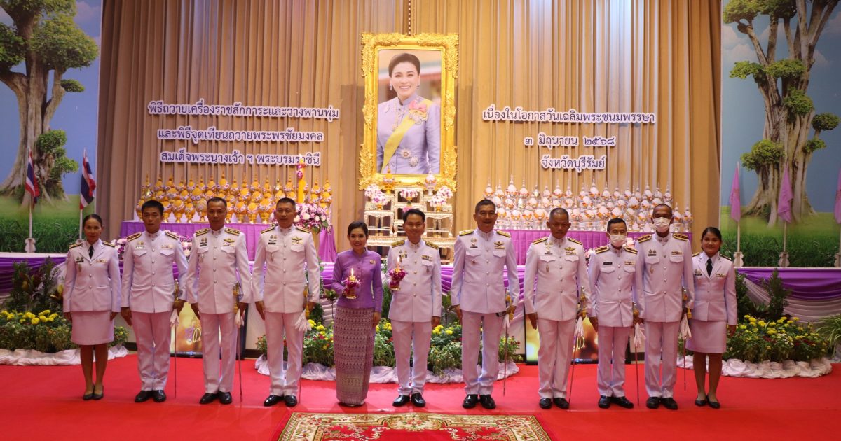 พล.ต.ต.ณรงค์ศักดิ์ พรหมทา ผบก.ภ.จว.บุรีรัมย์ พร้อมด้วย พ.ต.อ.ศิริชัย ศรีชัยปัญญา ผกก.ฝอ.ภ.จว.บุรีรัมย์, พ.ต.อ.จำรัส ศิริเลี้ยง ผกก.สภ.เมืองบุรีรัมย์ ข้าราชการตำรวจในสังกัด พร้อมด้วยหัวหน้าส่วนราชการ ร่วมพิธีถวายเครื่องราชสักการะและวางพานพุ่ม และพิธีจุดเทียนถวายพระพรชัยมงคล สมเด็จพระนางเจ้าสุทิดา พัชรสุธาพิมลลักษณ พระบรมราชินี เนื่องในโอกาสวันเฉลิมพระชนมพรรษา 3 มิถุนายน 2568