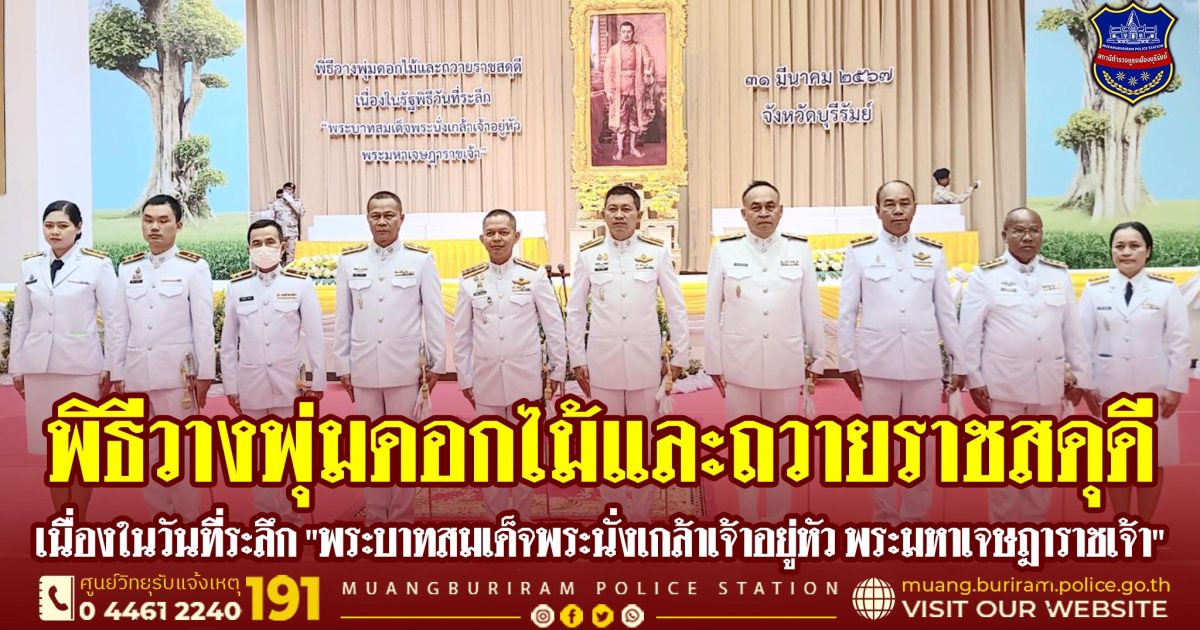 🔸พ.ต.อ.ชูสิทธิ์ หล่อแสง รอง ผบก.ภ.จว.บุรีรัมย์ พร้อมด้วย พ.ต.อ.จํารัส ศิริเลี้ยง ผกก.สภ.เมืองบุรีรัมย์ , ข้าราชการตำรวจฝ่ายอำนวยการ ภ.จว.บุรีรัมย์ , กก.สืบสวน ภ.จว.บุรีรัมย์ และ สภ.เมืองบุรีรัมย์ ร่วมพิธีวางพุ่มดอกไม้และถวายราชสดุดี เนื่องในวันที่ระลึก “พระบาทสมเด็จพระนั่งเกล้าเจ้าอยู่หัว พระมหาเจษฎาราชเจ้า” จังหวัดบุรีรัมย์ โดยมี นายนฤชา โฆษาศิวิไลซ์ ผู้ว่าราชการจังหวัดบุรีรัมย์ เป็นประธานในพิธี ณ หอประชุมจังหวัดบุรีรัมย์ ศูนย์ราชการจังหวัดบุรีรัมย์