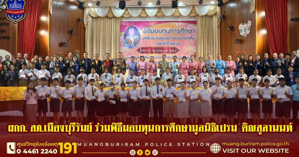 พ.ต.อ.จำรัส ศิริเลี้ยงผกก.สภ.เมืองบุรีรัมย์ ร่วมเป็นเกียรติพิธีมอบทุนการศึกษามูลนิธิเปรม ติณสูลานนท์