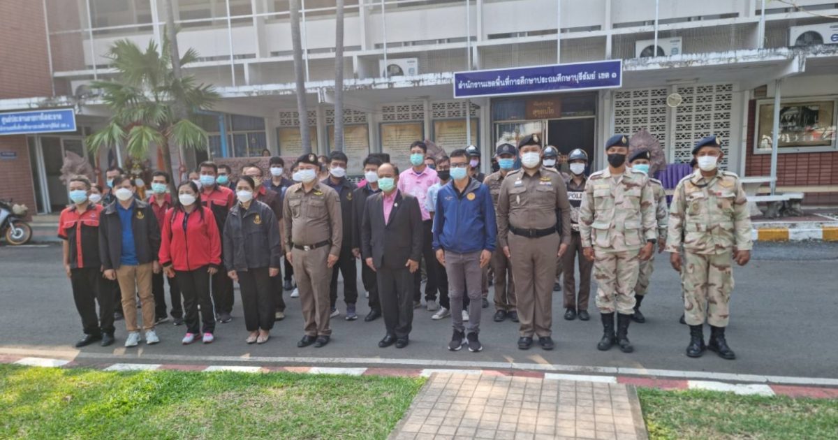 พ.ต.อ.ศิริวัฒน์ สมกิจศิริ ผกก.สภ.เมืองบุรีรัมย์ มอบหมายให้ พ.ต.ท.ธนานนท์ ไชยสิน รอง ผกก.ป.ฯ , ว่าที่ พ.ต.ท.ณิชธร ปูรณปัญญา สวป.ฯ , ร.ต.อ.สุมนัส นัดที ร้อยเวรป้องกันปราบปราม พร้อมสายตรวจรถจักรยานยนต์ ร่วมพิธีเปิดโครงการ “การดำเนินการขับเคลื่อนดูแลคุ้มครองและช่วยเหลือเด็กนักเรียนและรณรงค์สร้างสรรค์เฝ้าระวังวันวาเลนไทน์” โดยมี ผู้อำนายการเขตพื้นที่การศึกษาฯ เป็นประธาน ร่วมกับฝ่ายปกครอง ศูนย์คุ้มครองเด็ก ร่วมออกตรวจรักษาความสงบเรียบร้อย ณ สำนักงานเขตพื้นที่การศึกษาประถมศึกษาบุรีรัมย์ เขต 1