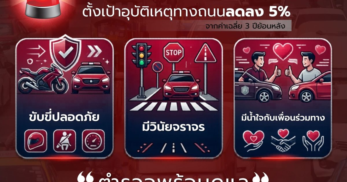 สงกรานต์ปลอดภัย 10-16 เมษายน ร่วมลดอุบัติเหตุ ลดการสูญเสีย “ขับขี่ปลอดภัย มีวินัยจราจร มีน้ำใจกับเพื่อนร่วมทาง” 10 เมษายน 2026 โดย admin_zero / ข่าวการปฏิบัติงาน