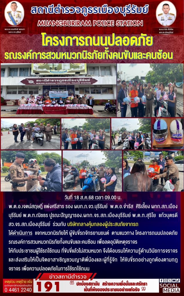 โครงการถนนปลอดภัย รณรงค์การสวมหมวกปลอดภัยนิรภัยทั้งคนขับและคนซ้อน 18 สิงหาคม 2025 โดย admin_zero / ข่าวการปฏิบัติงาน,ข่าวการปฏิบัติงาน,งานจราจร,ข่าวการปฏิบัติงาน,งานอำนวยการ