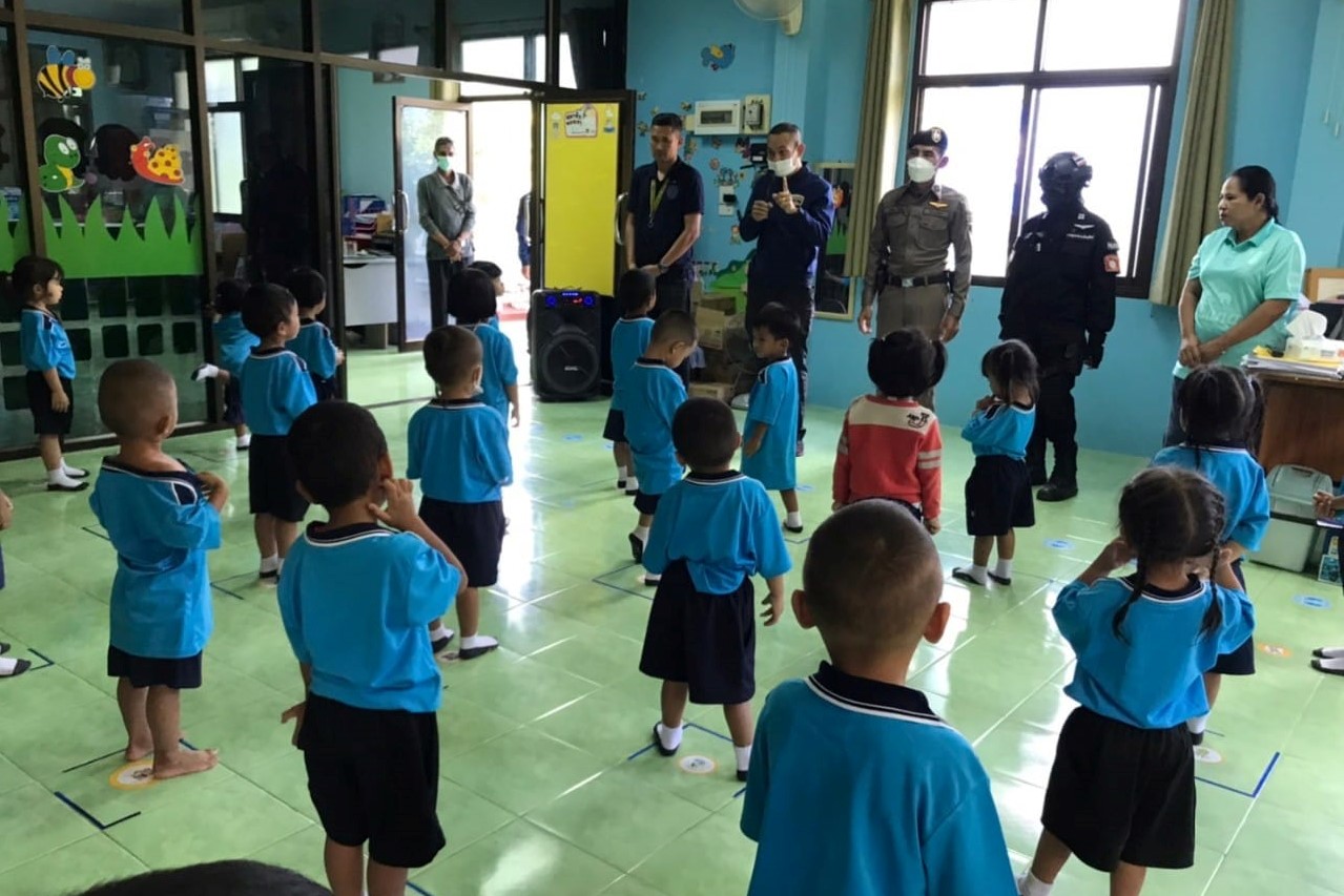 ให้เยาวชนรู้เท่าทันการรับมือเหตุกราดยิง “วิ่ง ซ่อน สู้” ตำรวจ สภ.เมืองบุรีรัมย์ ให้ความรู้และสาธิต