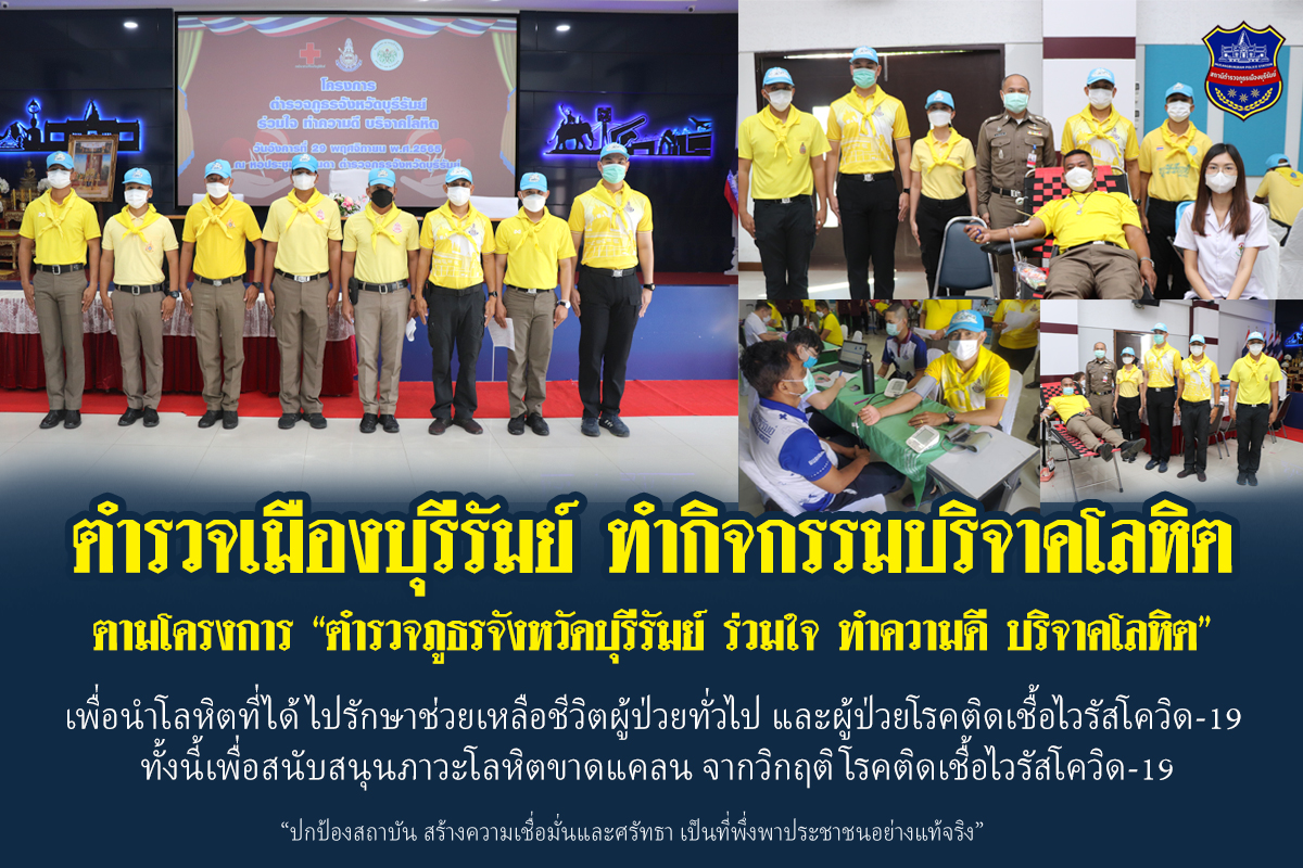 สภ.เมืองบุรีรัมย์ ร่วมกิจกรรมบริจาคโลหิตให้กับคลังเลือดโรงพยาบาลบุรีรัมย์ และเหล่ากาชาดจังหวัดบุรีรัมย์