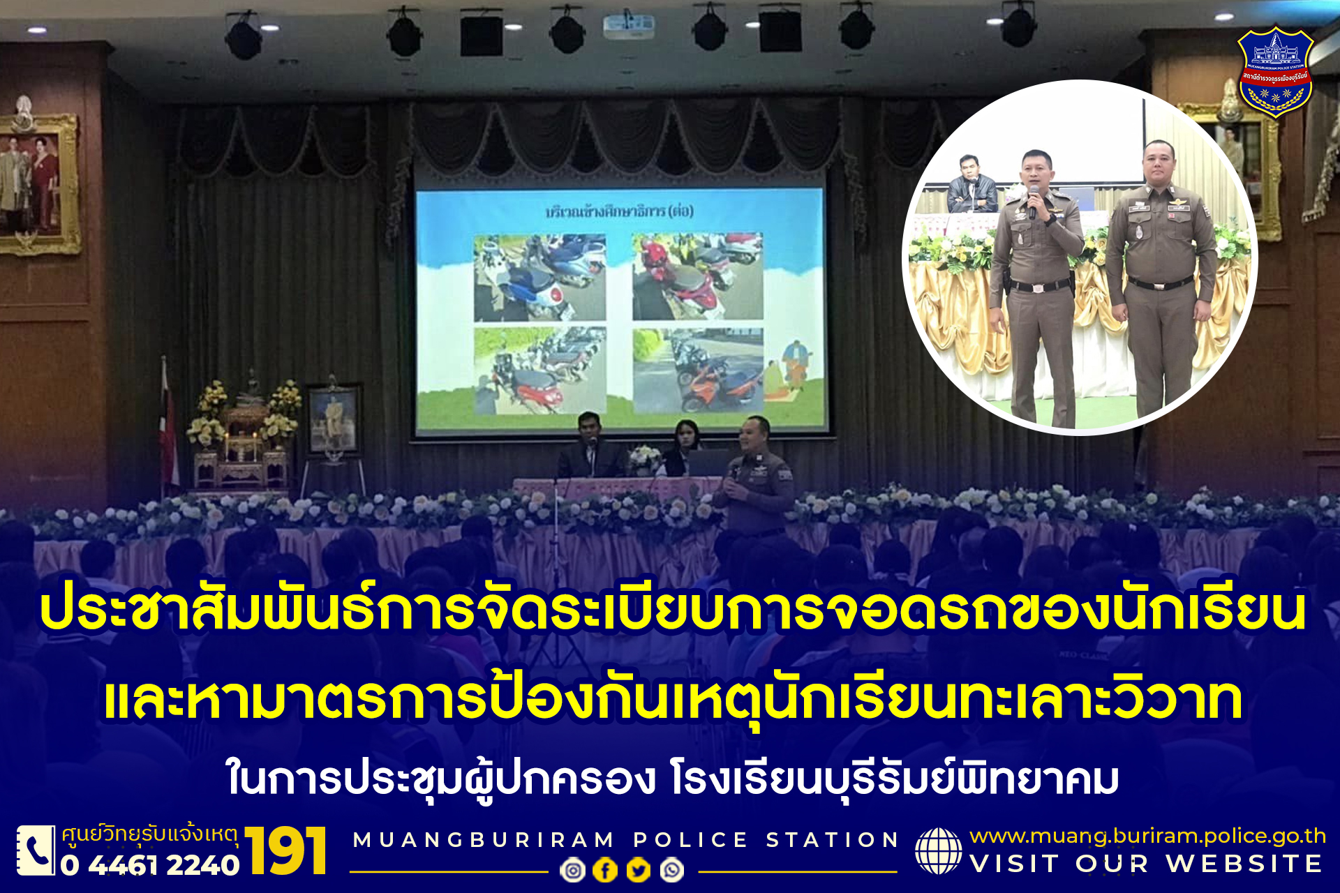 ประชาสัมพันธ์การจัดระเบียบการจอดรถของนักเรียนและหามาตรการป้องกันเหตุนักเรียนทะเลาะวิวาท