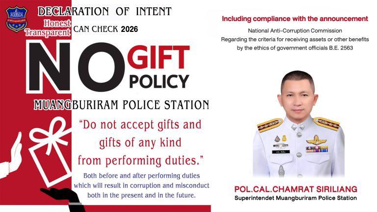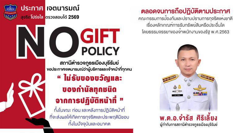 - ประกาศสำนักงานยุทธศาสตร์ตำรวจเรื่องเจตนารมณ์ที่จะไม่รับของขวัญหรือของกำนัลทุกชนิดจากการปฏิบัติหน้าที่