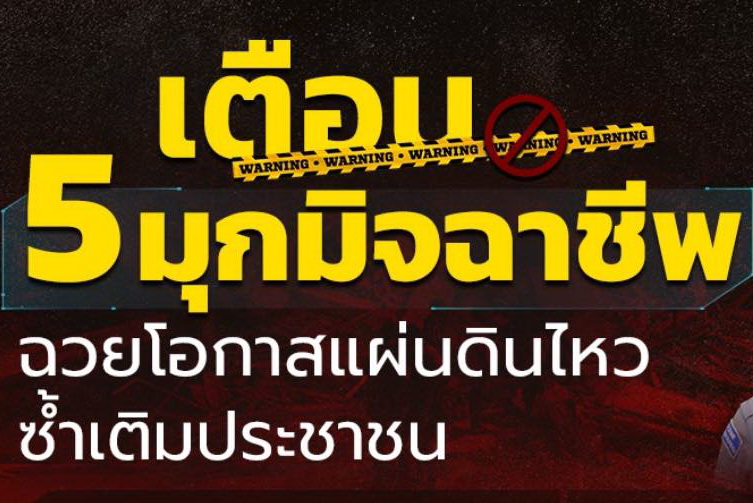 เตือน 5 มุกมิจฯ ฉวยโอกาสแผ่นดินไหว ซ้ำเติมประชาชน