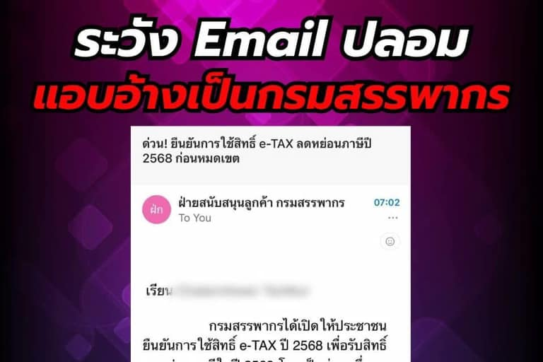เตือนภัยมิจฉาชีพ ส่ง Email แอบอ้างเป็นกรมสรรพากร