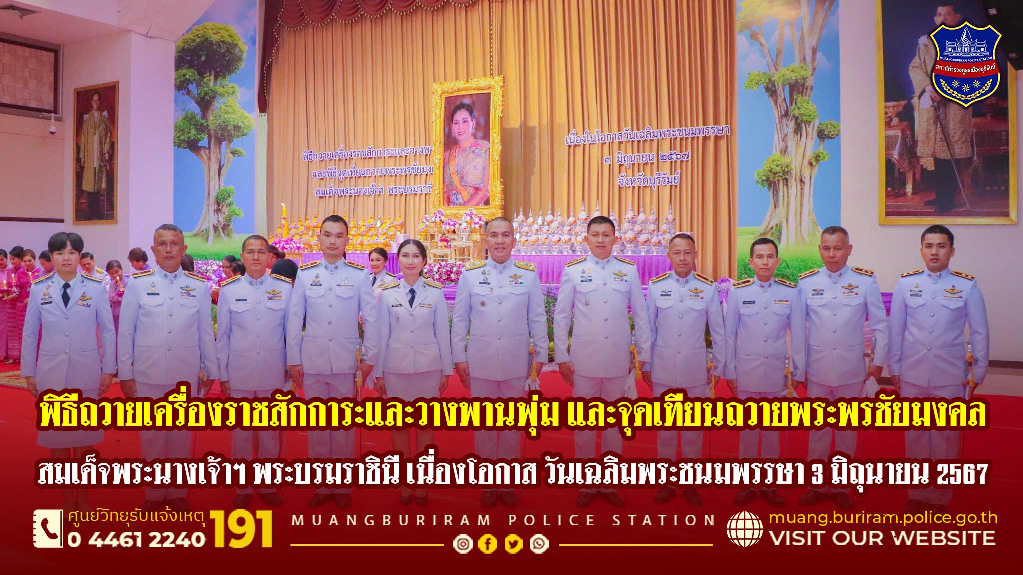 วันที่ 7 มิถุนายน 2567 เวลา 09.00 น. พ.ต.อ.ปริญญา พรเดชาพิพัฒ รอง ผบก.ภ.จว.บุรีรัมย์ ,พ.ต.อ.จำรัส ศิริเลี้ยง ผกก.สภ.เมืองบุรีรัมย์,พ.ต.ท.ธนานนท์ ไชยสินธุ์ รอง ผกก.(ป.) สภ.เมืองบุรีรัมย์ พร้อมข้าราชการตำรวจ สภ.เมืองบุรีรัมย์