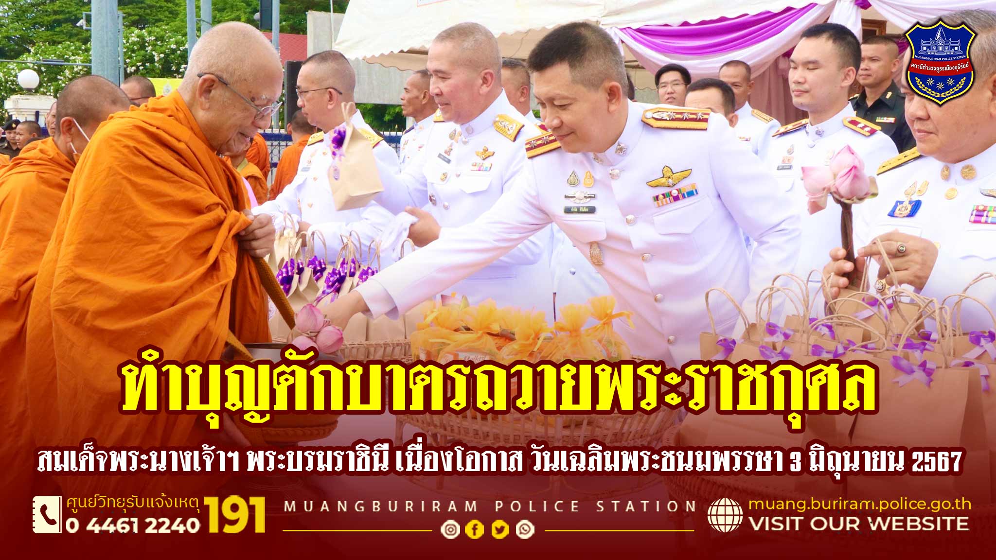 พล.ต.ต.รุทธพล เนาวรัตน์ ผบก.ภ.จว.บุรีรัมย์ พร้อมด้วย พ.ต.อ.จำรัส ศิริเลี้ยง ผกก.สภ.เมืองบุรีรัมย์ และข้าราชการตำรวจในสังกัด ภ.จว.บุรีรัมย์ ร่วมพิธีทำบุญตักบาตรถวายพระราชกุศล