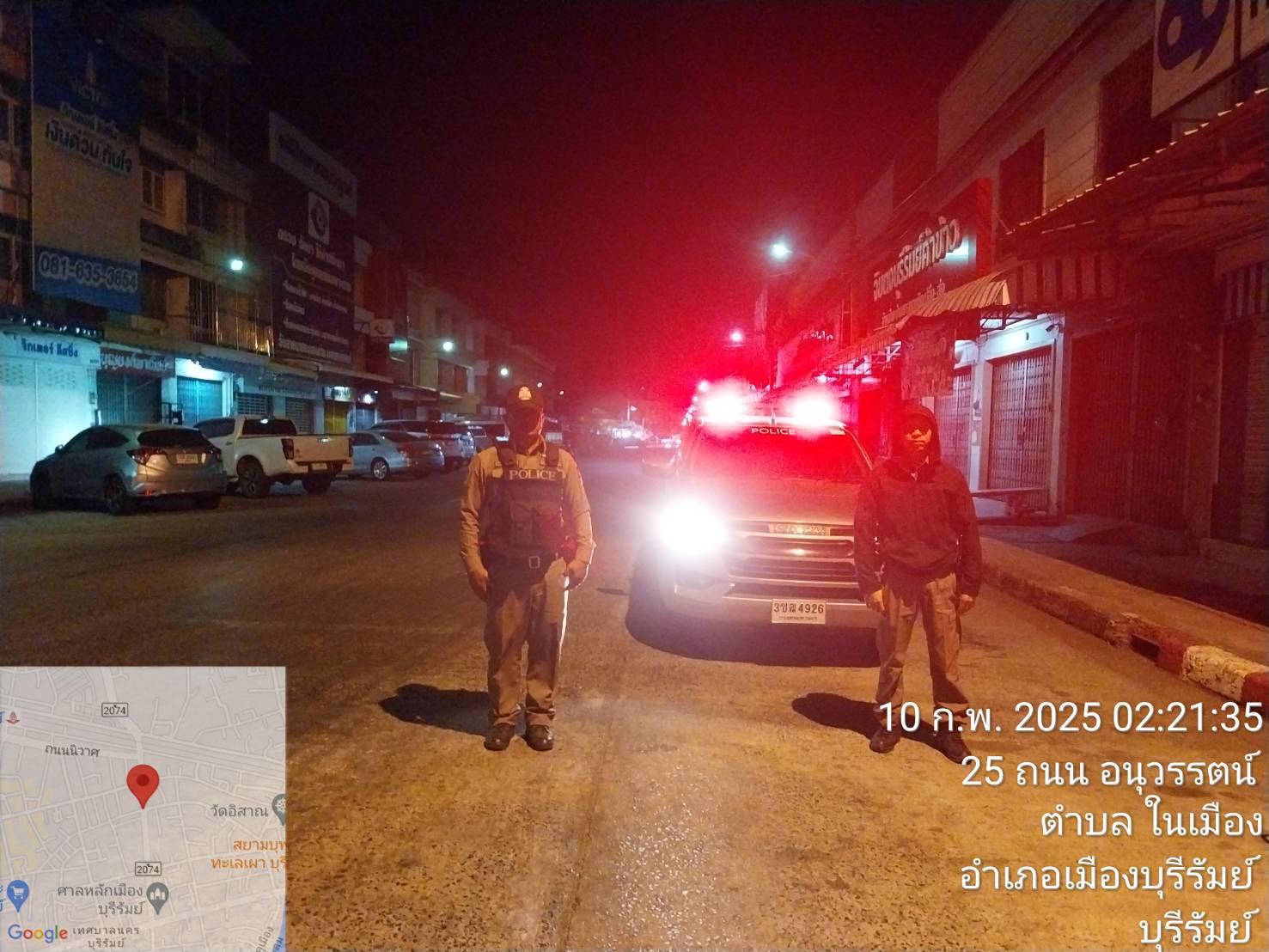วันที่ 3 กุมภาพันธ์ 2568 เวลา 00.05 น. พ.ต.ท.ณิชธร ปูรณะปัญญา สวป.สภ.เมืองบุรีรัมย์ ร.ต.อ.สมชาย บัวท
