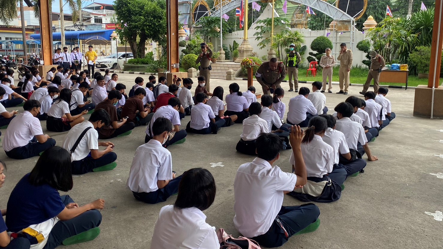ประชาสัมพันธ์ให้ความรู้ด้านกฎหมายจราจร การขับขี่ปลอดภัย แนะนำมิให้มีพฤติกรรมเสี่ยงในการแข่งรถในทาง ให้แก่นักเรียนโรงเรียนบัวหลวงวิทยาคม
